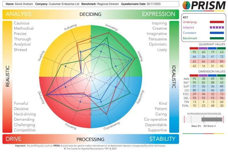 It's crucial to remember that a strength, when overemphasized, can potentially transform into a weakness. Utilizing Prism, a tool grounded in Neuroscience, offers valuable perspectives on identifying areas for coaching and personal growth.